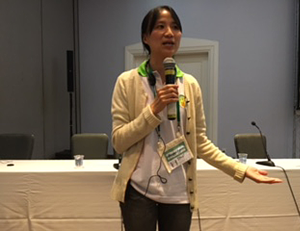 A partir de lo que Ip describió acerca de la efectividad de lxs trabajadorxs domésticxs relatando sus historias y su rol central en los procesos de diseño de políticas, Janet Lai, de Global Affairs [AsuntosGlobales] de Canadá y participante de la sesión, ofreció algunas sugerencias surgidas de un pequeño grupo de discusión en torno a colocar a lxs trabajadorxs en un lugar visible y clave de la campaña.