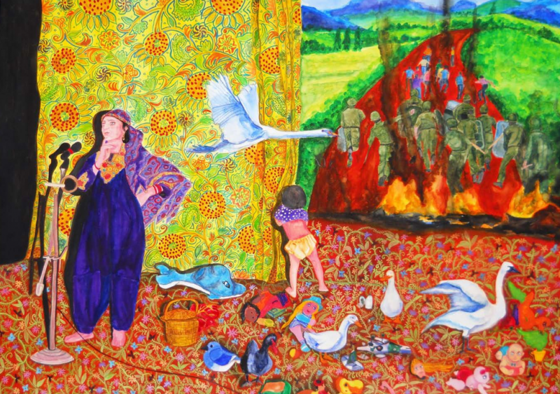 Ver el arte por Rollie Mukherjee sobre la resistencia en Cachemira (PDF)