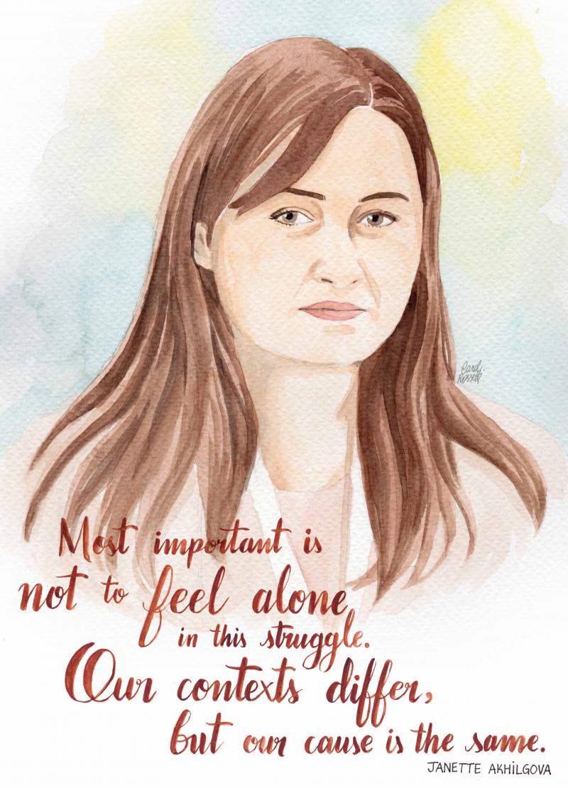 Janette Akhilgova travaille au sein de Peacebuilding UK dans la région du Nord-Caucase, en Russie. Elle est également la présidente du conseil d’administration de RC-DEV, une organisation locale sans but lucratif basée à Ingushetia. La Russie est une société multiconfessionnelle confrontée à différentes formes de fondamentalisme. Dans le Nord-Caucase, une région en majorité musulmane, le gouvernement et la société civile ont tenté de lutter contre la montée en puissance des fondamentalismes. Mais Janette a remarqué que ces acteurs négligent systématiquement la dimension de genre du problème. Janette travaille à l’élaboration de plateformes plus solides de dialogue et de sensibilisation sur les fondamentalismes et sur leur impact sur les femmes. Elle espère voir se tisser une solidarité plus forte entre ceux et celles qui luttent contre les fondamentalismes en Russie mais aussi avec d’autres personnes et groupes de sa région et avec des acteurs alliés dans d’autres pays.