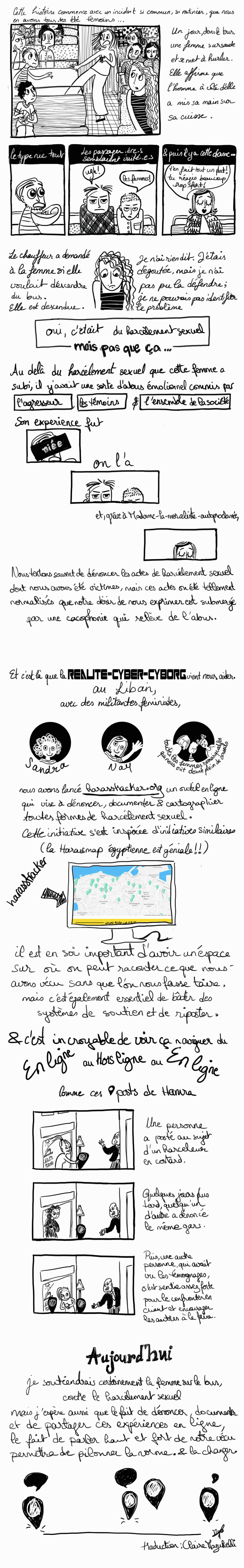 Myra est une artiste visuelle et illustratrice primée. Elle est également une co-fondatrice de harasstracker.org, co-fondatrice de space27 (un espace d’art /studio de travail féministe à Beyrouth) et doctorate en études de genre (à Paris 8) et évidemment une fan d’Alison Bechdel.
