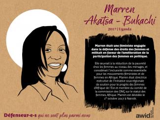 Marren Akatsa-Bukachi 20 November 2020 Read in: Anglais Français Espagnol Category Droits civils et politiques Region Afrique Afrique subsaharienne Date of death / disappearance 2017
