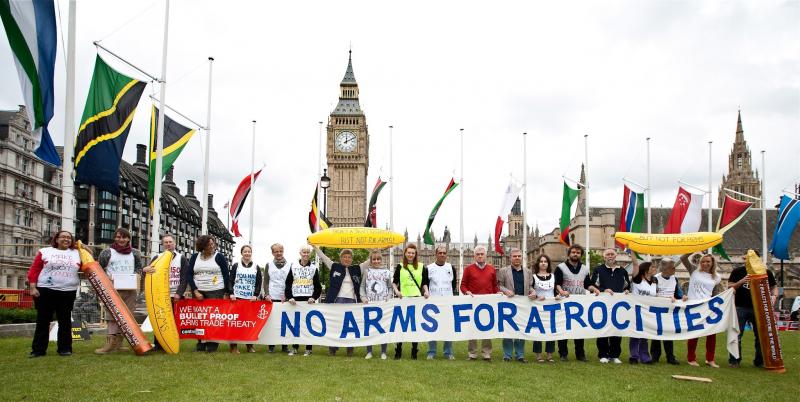 Like the term ‘internal repression’ used in the UK’s official policy on arms exports, the use of the word ‘overriding’ in the treaty’s text is an example of how a negotiating process can use semantics to weaken and blur meaning. The Treaty states that arms should not be exported if there is an “overriding risk” of serious violations of international humanitarian or human rights law. According to Ceasefire, this word “overriding” is open to interpretation. “It could be taken to mean that arms exports should only be stopped in extreme or exceptional circumstances, or that a state could decide that the risk of abuse was not enough to “override” the perceived benefits of the arms export.” They say “the original Control Arms draft said that arms transfers should be refused if they were “likely” to be used to commit serious violations. Later drafts raised the threshold to “substantial risk,” and in 2012 it was further raised to “overriding risk”. The NGOs tried hard to get that changed back to “substantial,” with support from many countries, but the US insisted that “overriding” must remain.”