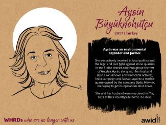 Ces défenseuses ont fait campagne pour les droits fonciers et ont lutté pour les droits des femmes et des peuples autochtones. Elles se sont opposées aux industries extractives, ont écrit de la poésie et se sont battues pour que l'amour prévale. L'une d'entre elles nous a quitté il y a dix-neuf ans. Nous vous invitons à vous joindre à nous pour rendre hommage à ces défenseuses, à leur travail et à l’héritage qu’elles nous ont laissé. Faites circuler ces mèmes auprès de vos collègues et amis ainsi que dans vos réseaux et twittez en utilisant les hashtags #WHRDTribute et #16Jours.
