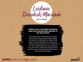 Leidiane Drosdoski Machado 20 November 2020 Read in: English French Spanish Category Environment Region Latin America Date of death / disappearance 2015 Cause of death / disappearance Killed / Asesinada / Assassinée