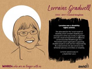 Lorraine Gradwell 20 November 2020 Read in: English French Spanish Category Economic, Social and Cultural Rights Region Western Europe Date of death / disappearance 2017 Cause of death / disappearance Natural / Muerte natural / Mort naturelle